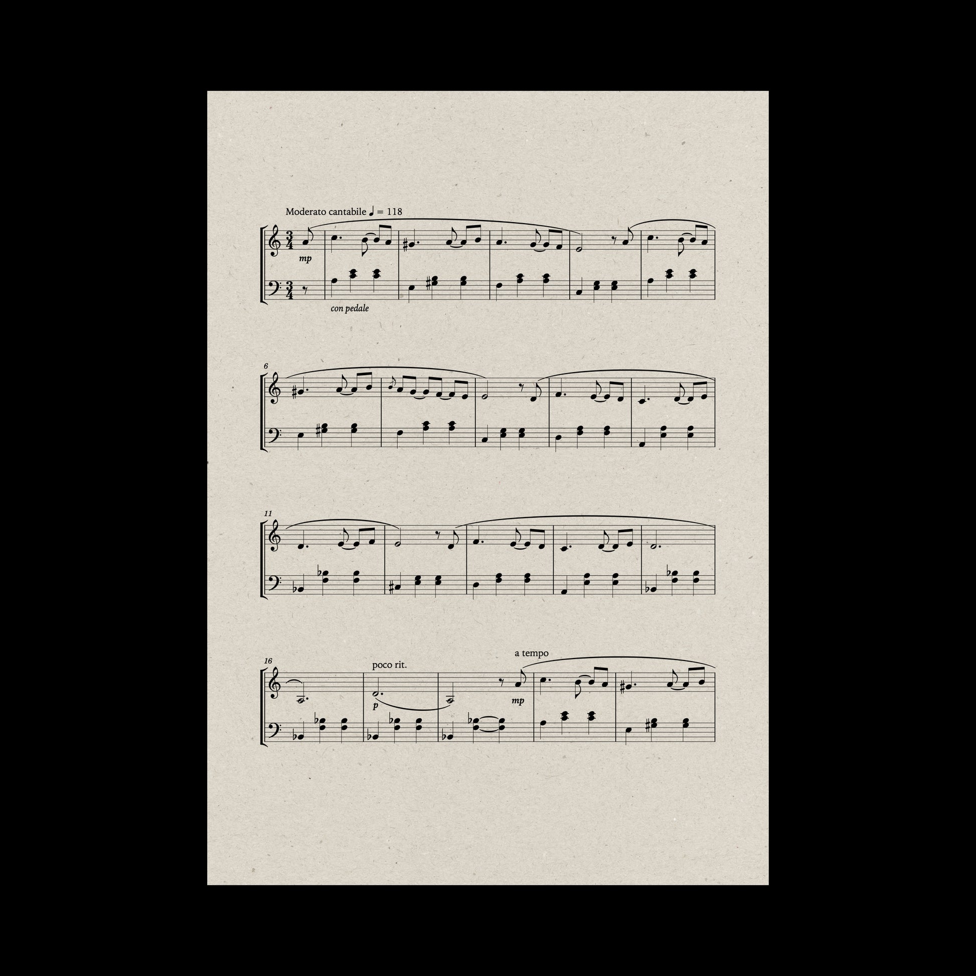 Sheet music for Flores secas en un jarrón hecho a mano, a solo-piano composition released in 2022. You will receive it as a high-res PDF file via email.